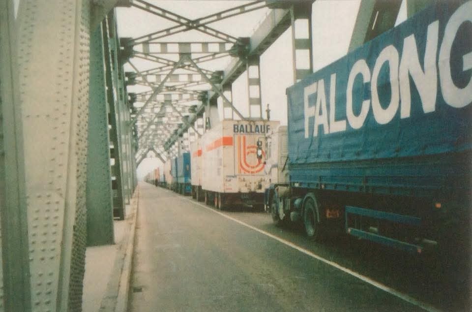 Nu var jag i Ungern och på väg på den ungerska tundran (Puszta), ett slättland med mycket jordbruk. Vägen var spik rak på många ställen, och ej heller några backar att tala om. Jag behövde ej växla ner för ofta heller, utan det rullade på rätt bra. På de vidsträckta åkrarna såg man massor av människor som arbetade. Man såg inga maskiner utan allt gjordes för hand. Någon enstaka traktor såg man här och där. Jag hade 30 mil till Budapest, vilket jag inte skulle klara före mörkrets inbrott i dag, så jag fick stanna ca 5 mil före Budapest. Det var lika bra det för det var krångligt att ta sig igenom staden efter-som man körde rakt igenom centrum. DET var lättare när det var ljust och man kunde ta riktmärke på vissa byggnader. Här korsade jag Donau mitt i centrum på Lanchid bron (kettenbrucke). Färden gick vidare mot Wien dit jag hade 26 mil. Jag passerade Györ, och tog sikte på Bratislava, som jag passerade på min högra sida. Även tullen gick förvånansvärt fort. Det var ju inget att förtulla. Bara 2 stämplar i TIR caneret. Här möttes 3 länder. Ungern. Österrike. Och Slovakien. Jag följde Donaus strand till Wien, och vidare till Linz och Salzburg på gränsen till Tyskland. Jag stannade på tullens parkeringsplats över natten för att få min vilotid, som jag kunde visa upp med färdskrivardiagram för den tyska polisen vid gränsen.